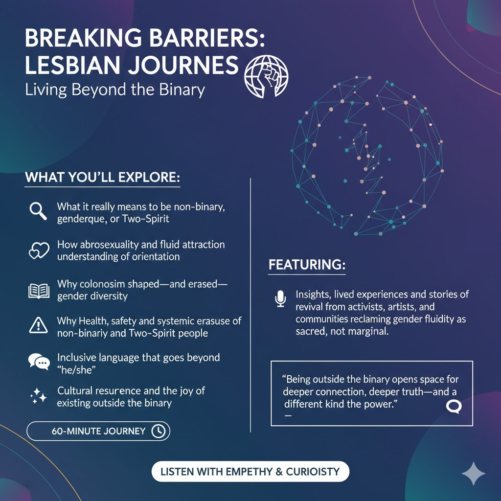 In this compelling episode of Breaking Barriers: Lesbian Journeys, we unpack the deeply personal and politically powerful realities of gender identity, sexual fluidity, and inclusive language practices. 🌍✊